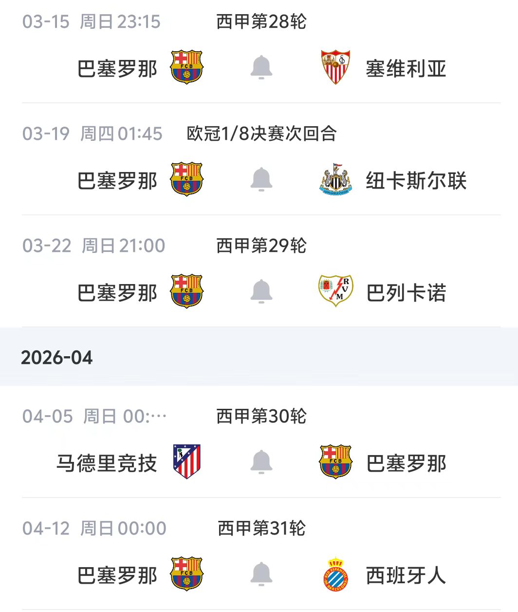 巴薩未來賽程如下