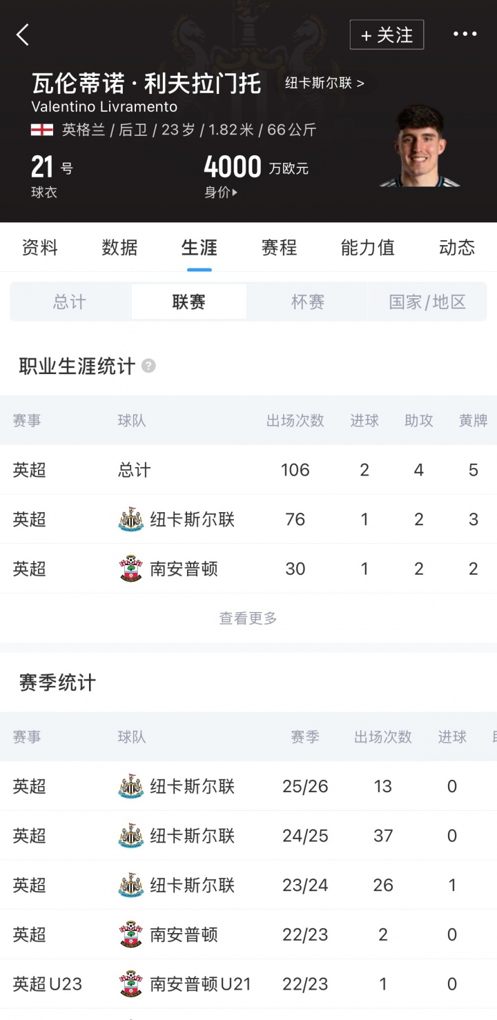 報道稱,利夫拉門托與紐卡的合同還剩兩年,且他目前還未表現(xiàn)出續(xù)約意愿。這使得紐卡處于被動地位,球員也引起了阿森納的關注。利夫拉門托與阿爾特塔的經紀人是同一位,這可能有助于簡化交易流程。
