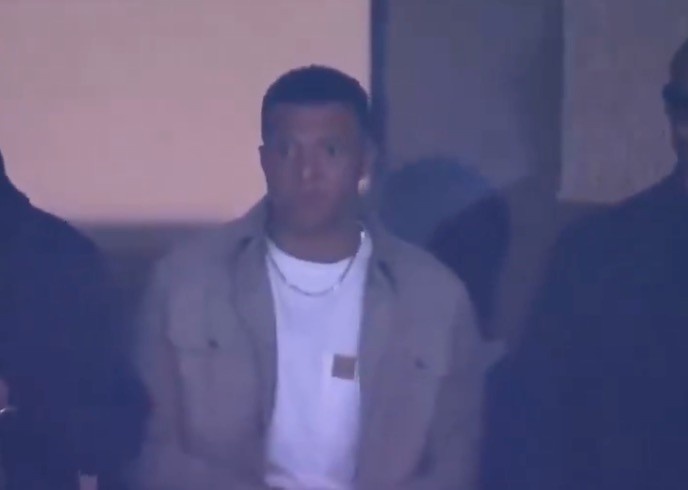 看臺上為球隊助威,姆巴佩現(xiàn)場觀看皇馬主場對陣曼城