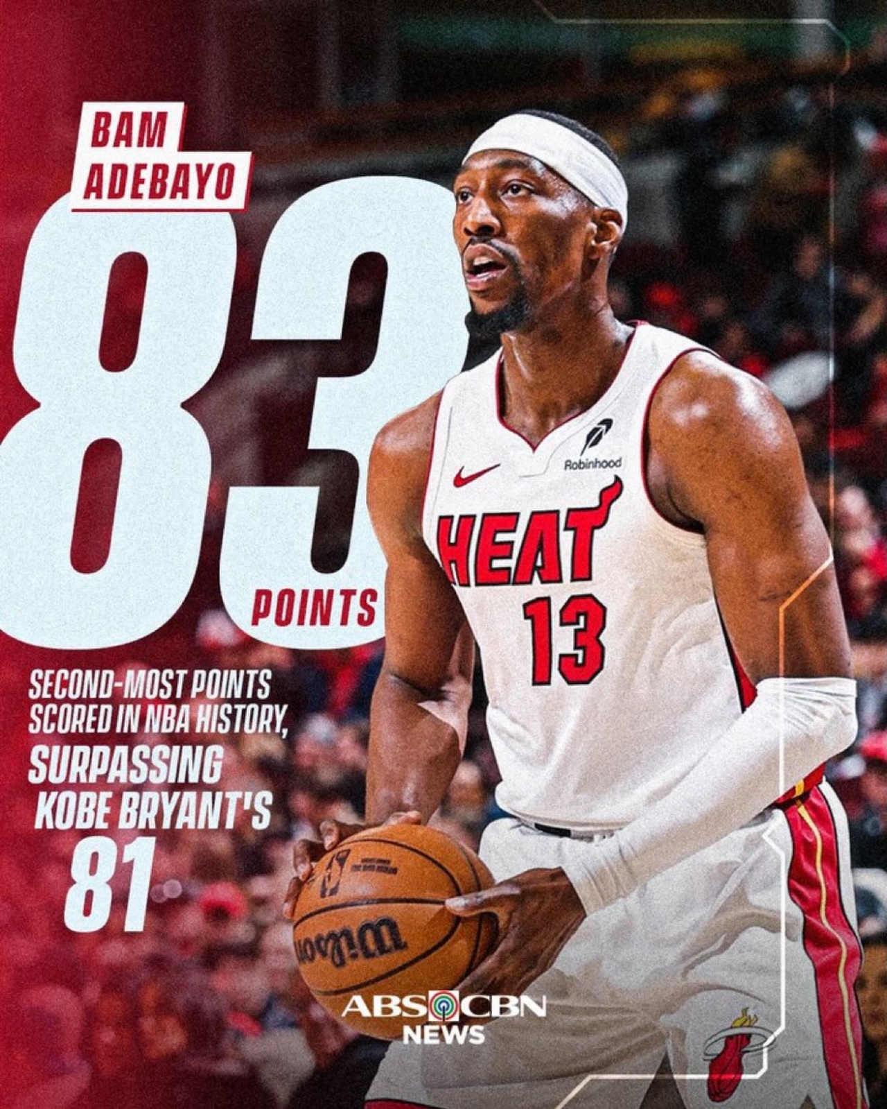 直播吧03月12日訊 熱火主場150-129大勝奇才,阿德巴約狂轟83分創(chuàng)歷史單場第二高分。