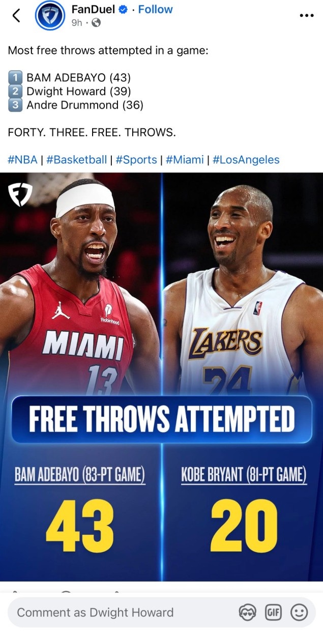 直播吧3月12日訊 熱火150-129主場擊敗奇才,阿德巴約獨(dú)得83分超越科比的81分,創(chuàng)NBA歷史第二單場個(gè)人高分,僅次于張伯倫的100分。