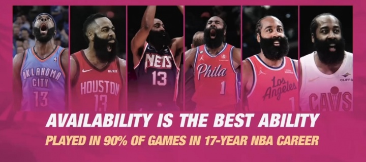 能上場就是最強的能力!哈登生涯至今17年 出勤率高達(dá)90%!