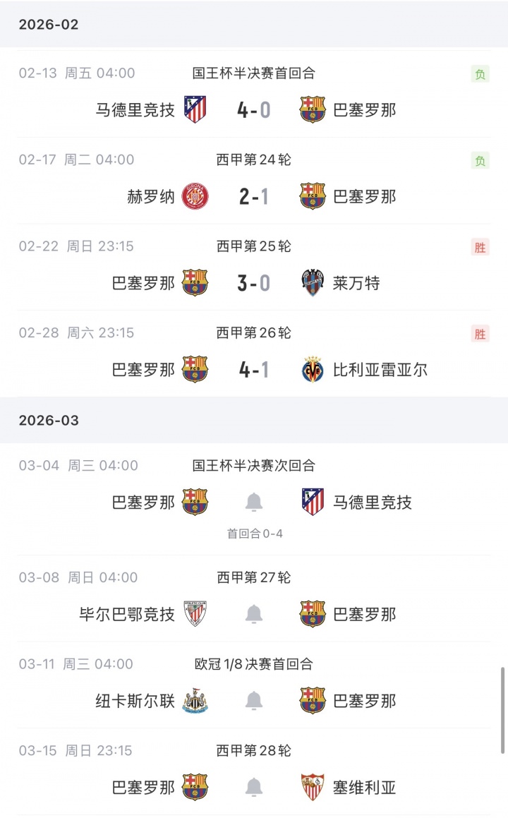 巴薩賽程