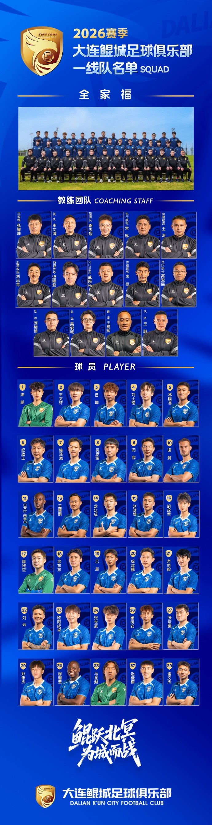 2026賽季大連鯤城足球俱樂(lè)部一線(xiàn)隊(duì)名單