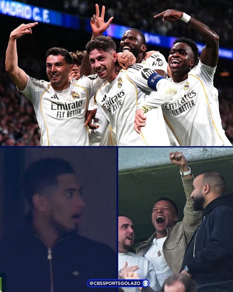 因傷缺席此役的貝林厄姆、姆巴佩在看臺觀看比賽,巴爾韋德進(jìn)球之后,貝林厄姆表情驚愕,反應(yīng)夸張,隨后鼓掌慶祝。
