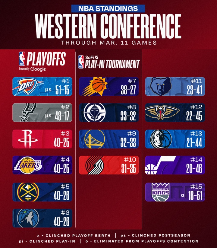 今日6場NBA常規(guī)賽全部戰(zhàn)罷,來看看今日賽后的排名變化吧: