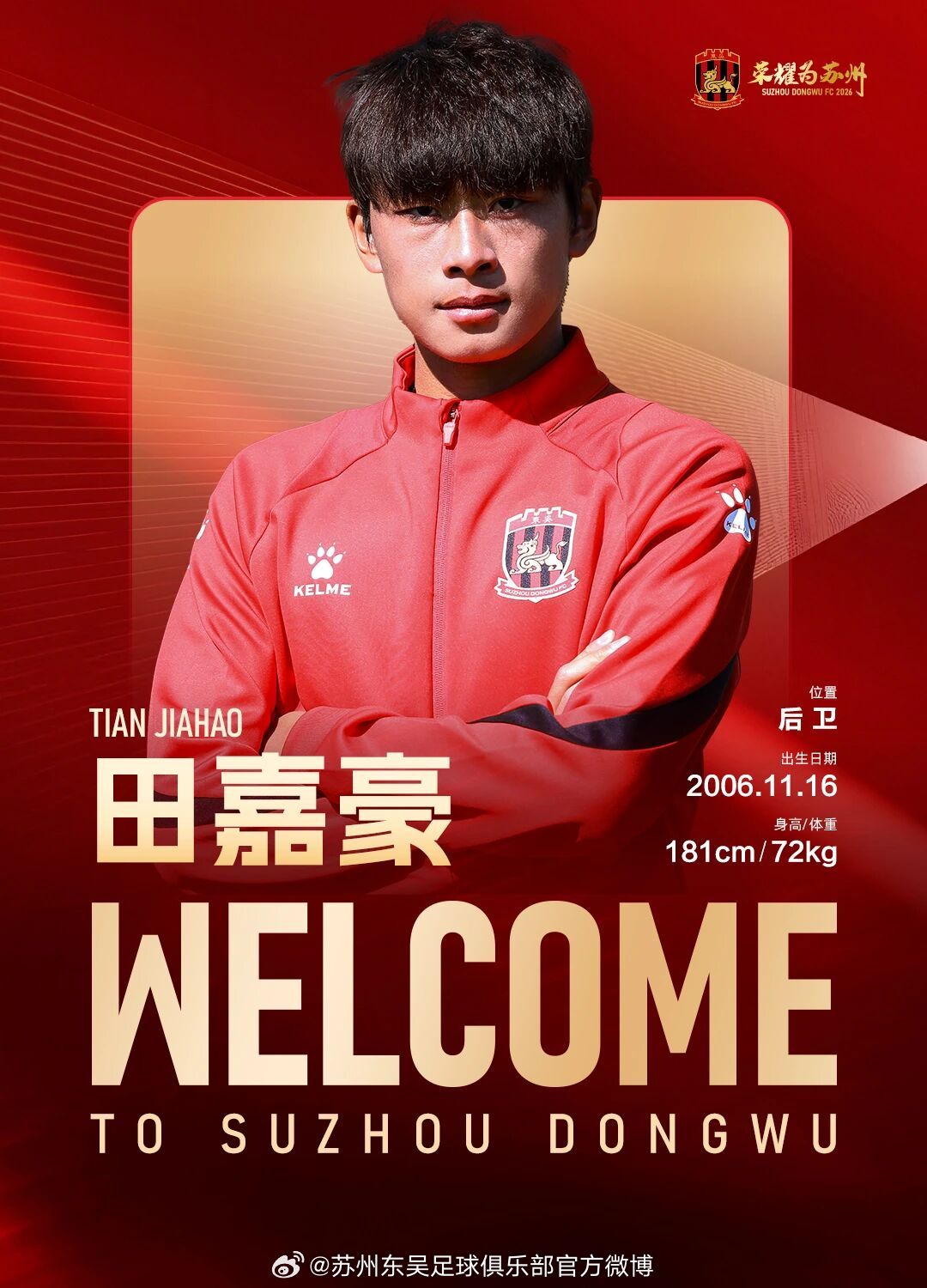 經(jīng)友好協(xié)商并達(dá)成一致,球員田嘉豪正式加盟蘇州東吳足球俱樂(lè)部,為蘇州東吳出戰(zhàn)新賽季中甲及足協(xié)杯賽事。
