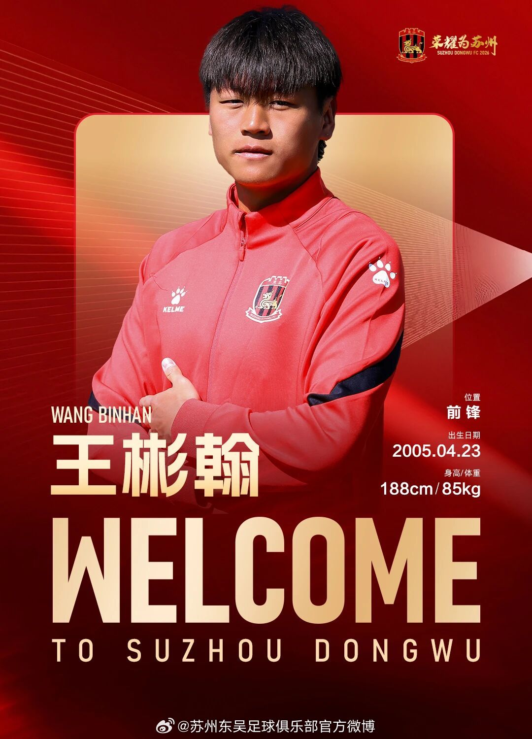 經(jīng)友好協(xié)商并達(dá)成一致,球員王彬翰正式加盟蘇州東吳足球俱樂(lè)部,為蘇州東吳出戰(zhàn)新賽季中甲及足協(xié)杯賽事。