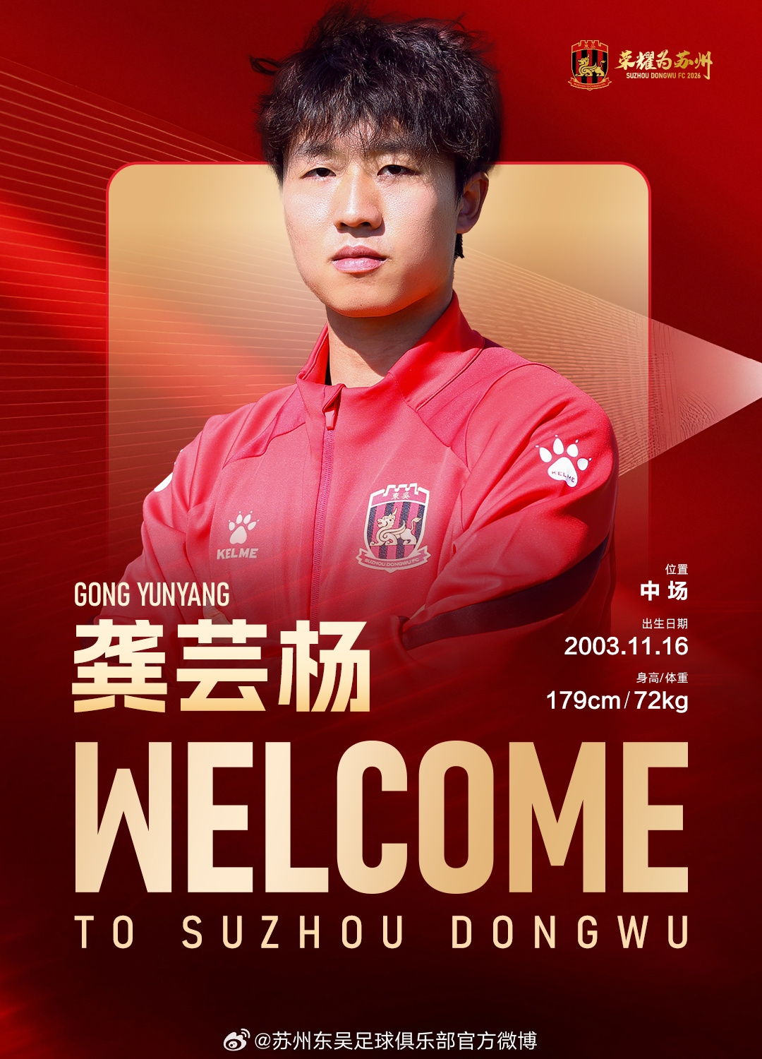 經(jīng)友好協(xié)商并達(dá)成一致,球員龔蕓揚(yáng)正式加盟蘇州東吳足球俱樂(lè)部,為蘇州東吳出戰(zhàn)新賽季中甲及足協(xié)杯賽事。