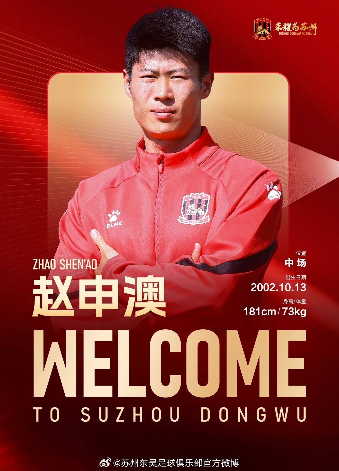 經(jīng)友好協(xié)商并達(dá)成一致,球員趙申澳正式加盟蘇州東吳足球俱樂(lè)部,為蘇州東吳出戰(zhàn)新賽季中甲及足協(xié)杯賽事。