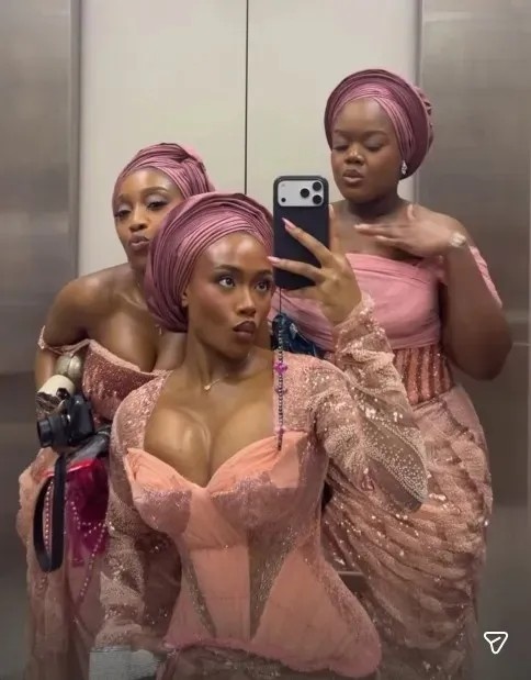 這位阿森納球星的女友在Instagram快拍中分享了多段婚禮當(dāng)天的視頻,慶祝這一美妙時刻。其中一張照片里,她與另外兩位賓客在電梯里自拍合影,三人均身著驚艷的粉色禮服。
