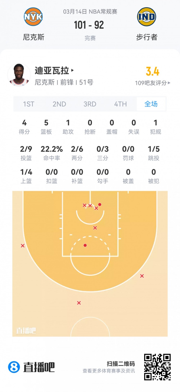 尼克斯次輪51號秀穆罕默德·迪亞瓦拉 登場19.8分鐘