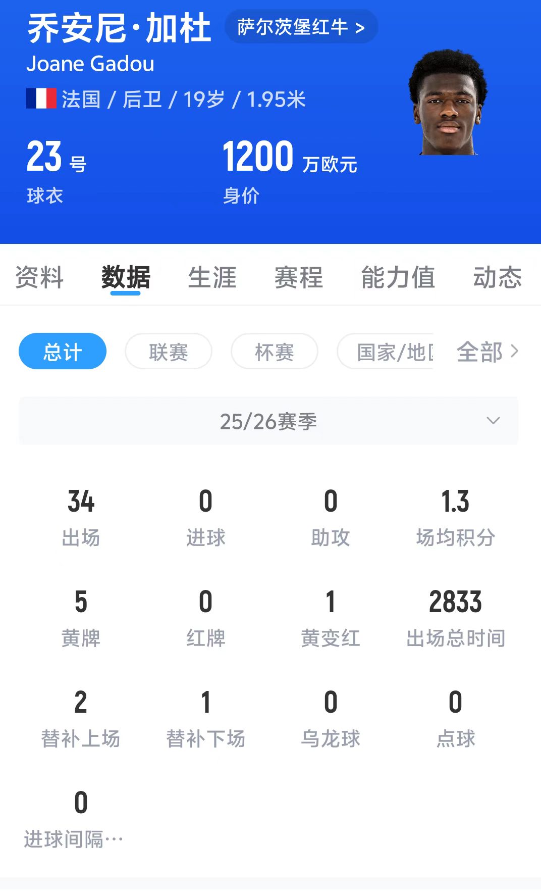 據(jù)《圖片報(bào)》報(bào)道,薩爾茨堡紅牛隊(duì)的喬安尼·加杜仍然是引援目標(biāo)。他是一位極具潛力的年輕球員。目前代表薩爾茨堡紅牛出場(chǎng)34次,目前身價(jià)1200萬(wàn)歐元。