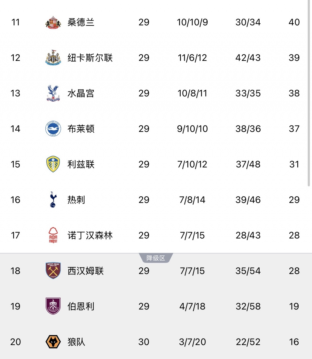 OPTA預(yù)測降級概率:熱刺18.11%,西漢姆48.78%,伯恩利狼隊(duì)超99%
