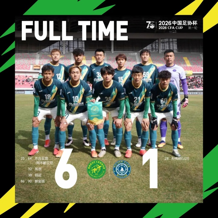 直播吧03月14日訊 3月14日15點(diǎn),2026中國(guó)足協(xié)杯第一輪,榆林礦工旅投坐鎮(zhèn)主場(chǎng)榆林體育中心體育場(chǎng)對(duì)陣天津棣華津英。憑借著隊(duì)長(zhǎng)楊運(yùn)的兩傳一射,木合買(mǎi)提·阿不都艾尼的兩射一傳,郭金鋮的梅開(kāi)二度和陳澍的破門(mén),榆林礦工旅投6-1大勝天津棣華津英,挺進(jìn)中國(guó)足協(xié)杯第二輪。