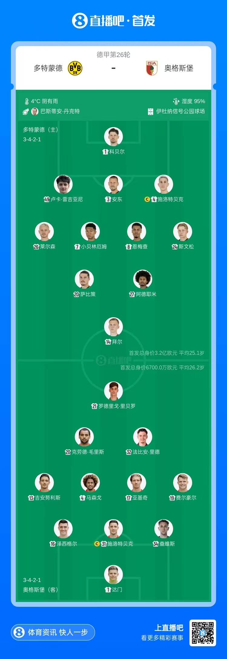 直播吧03月14日訊 北京時間3月14日22:30,德甲第26輪,多特蒙德主場迎戰(zhàn)奧格斯堡。賽前雙方首發(fā)陣容公布。