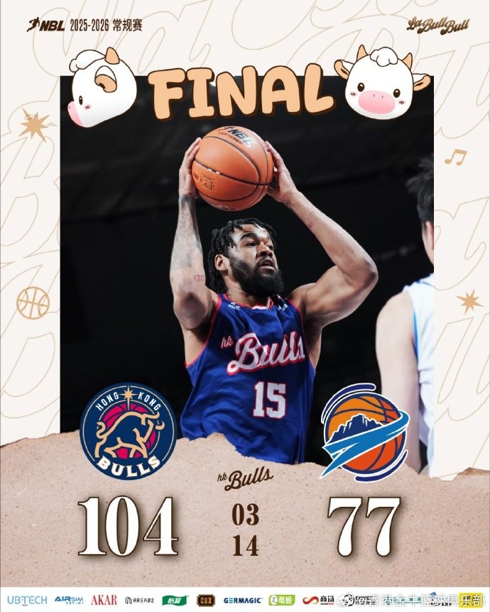 末節(jié)決戰(zhàn),球隊外線攻勢不減。董健兩度突施冷箭,瓊斯接連助攻厄特爾與盧藝文命中三分,隨著唐才育外線同樣得手,球隊憑借穩(wěn)定的三分火力鎖定勝局,港將楊瑞鴻替補登場貢獻一記精彩的持球撤步三分,全場比賽結(jié)束,香港金牛104-77戰(zhàn)勝焦作文旅。