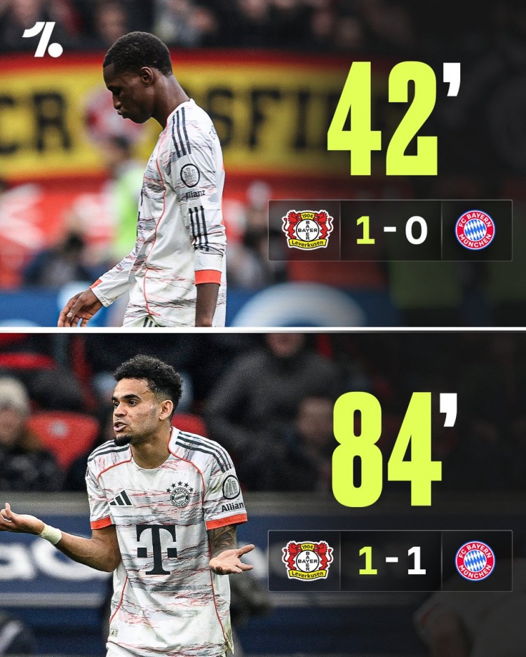直播吧3月15日訊 德甲第26輪比賽,拜仁在客場以1-1的比分戰(zhàn)平勒沃庫森。本場比賽,拜仁兩將尼古拉斯·杰克遜和路易斯·迪亞斯分別在第42分鐘和第84分鐘被罰下。