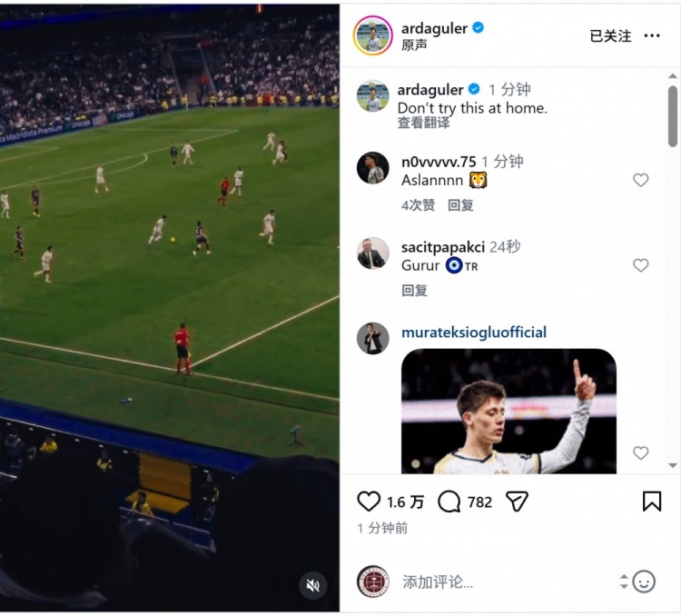 居萊爾社媒曬出吊射破門的視頻,調(diào)侃配文:“不要在家里嘗試這個(gè)?!?/p>