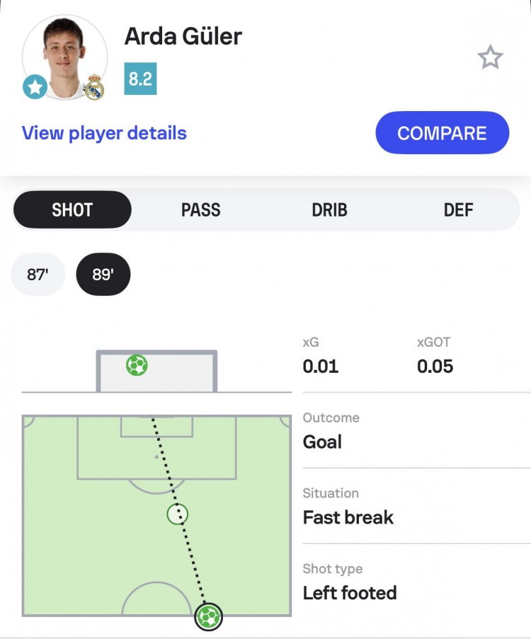 Sofascore調(diào)侃:居萊爾這球距離太遠(yuǎn)了,我們得重新設(shè)計(jì)射門(mén)路線圖