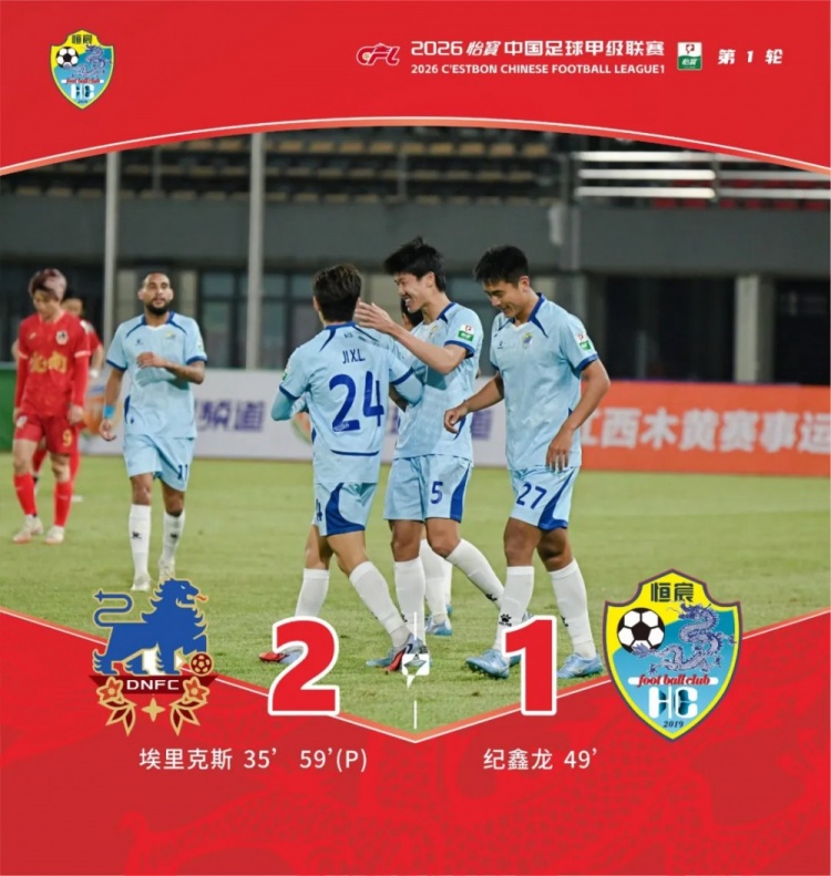 直播吧3月15日訊 3月14日19時30分,2026中甲聯(lián)賽第一輪,廣西恒宸客場1-2不敵定南贛聯(lián)。這是廣西恒宸隊史首場中甲聯(lián)賽,紀鑫龍打進球隊隊史首粒中甲進球。