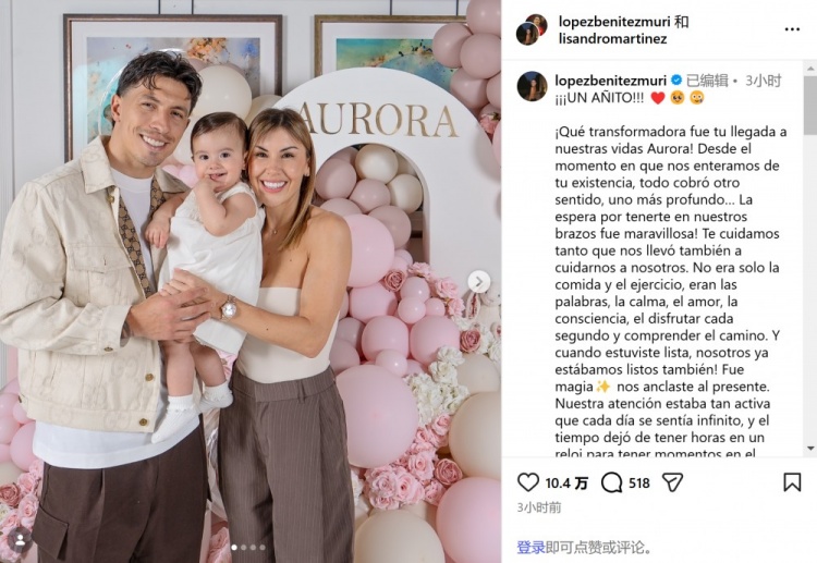 直播吧3月15日訊 3月14日是曼聯(lián)后衛(wèi)利桑德羅·馬丁內(nèi)斯女兒奧羅拉1歲生日。在社交媒體上,阿根廷鐵漢展示出了柔情一面,給女兒送上了愛(ài)的告白。