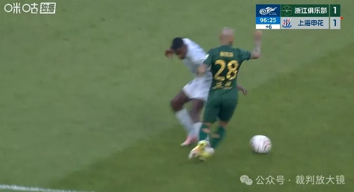 因?yàn)榘凑崭蕵?shù)然對(duì)佯裝的容忍度,那么在比賽最后階段,浙江28號(hào)隊(duì)員突破時(shí)防守隊(duì)員伸腳,但是慢放顯示防守隊(duì)員并沒(méi)有明顯踢到對(duì)方,即使踢到這種力度也不會(huì)被吹罰犯規(guī),對(duì)方也是被夸大了被侵犯的力度,那么也應(yīng)該判罰假摔。裁判員不怕錯(cuò)判、漏判,就怕一場(chǎng)的尺度不一。