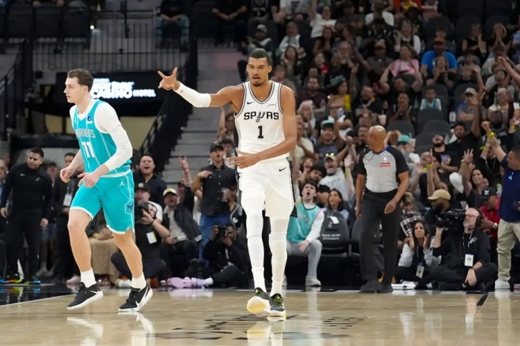 文班亞馬30分鐘32分12籃板3封蓋2搶斷5個三分球——以及賽季最高的8助攻。