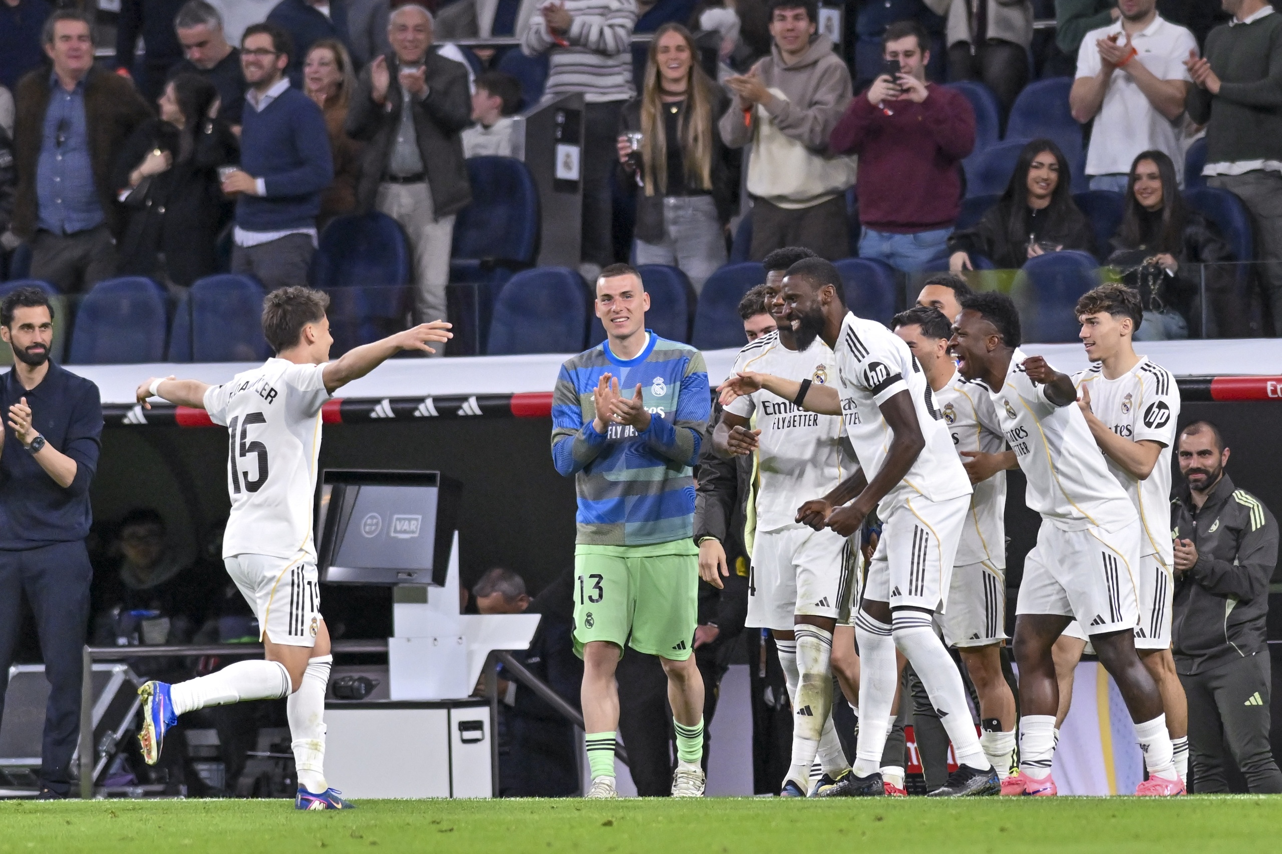 直播吧03月15日訊 西甲第28輪,皇馬主場4-1輕取埃爾切,比賽第89分鐘,皇馬中場居萊爾打進一記距門68米的超遠后場吊射,技驚四座。