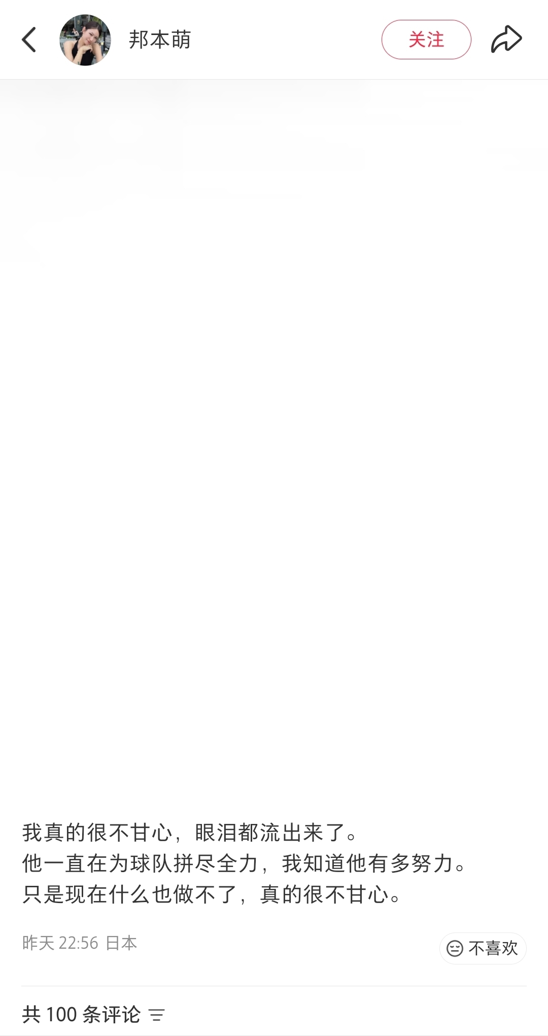 賽后邦本宜裕的妻子邦本萌發(fā)聲,表示:我真的很不甘心,眼淚都流出來了。他一直在為球隊(duì)拼盡全力,我知道他有多努力。只是現(xiàn)在什么也做不了,真的很不甘心。