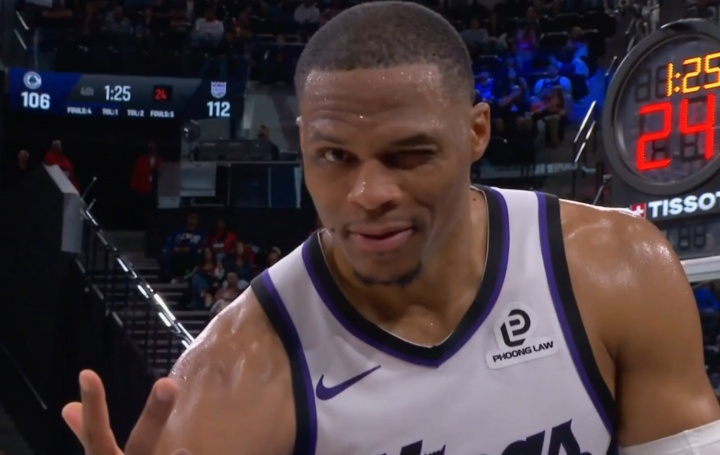 陽光開朗大男孩!威少模仿裁判比出3罰 隨后對著鏡頭送上wink