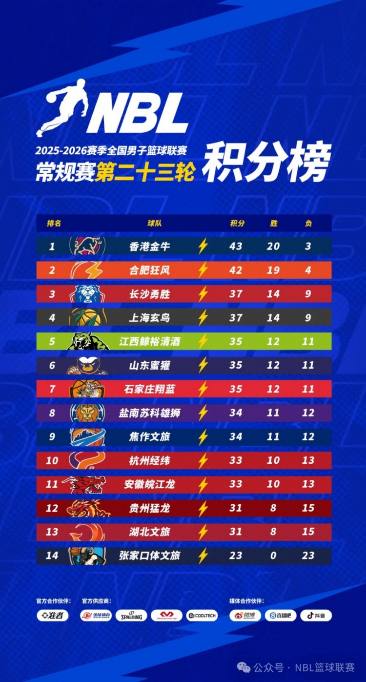 2025-2026賽季NBL常規(guī)賽第二十三輪比賽于3月14日全部戰(zhàn)罷。
