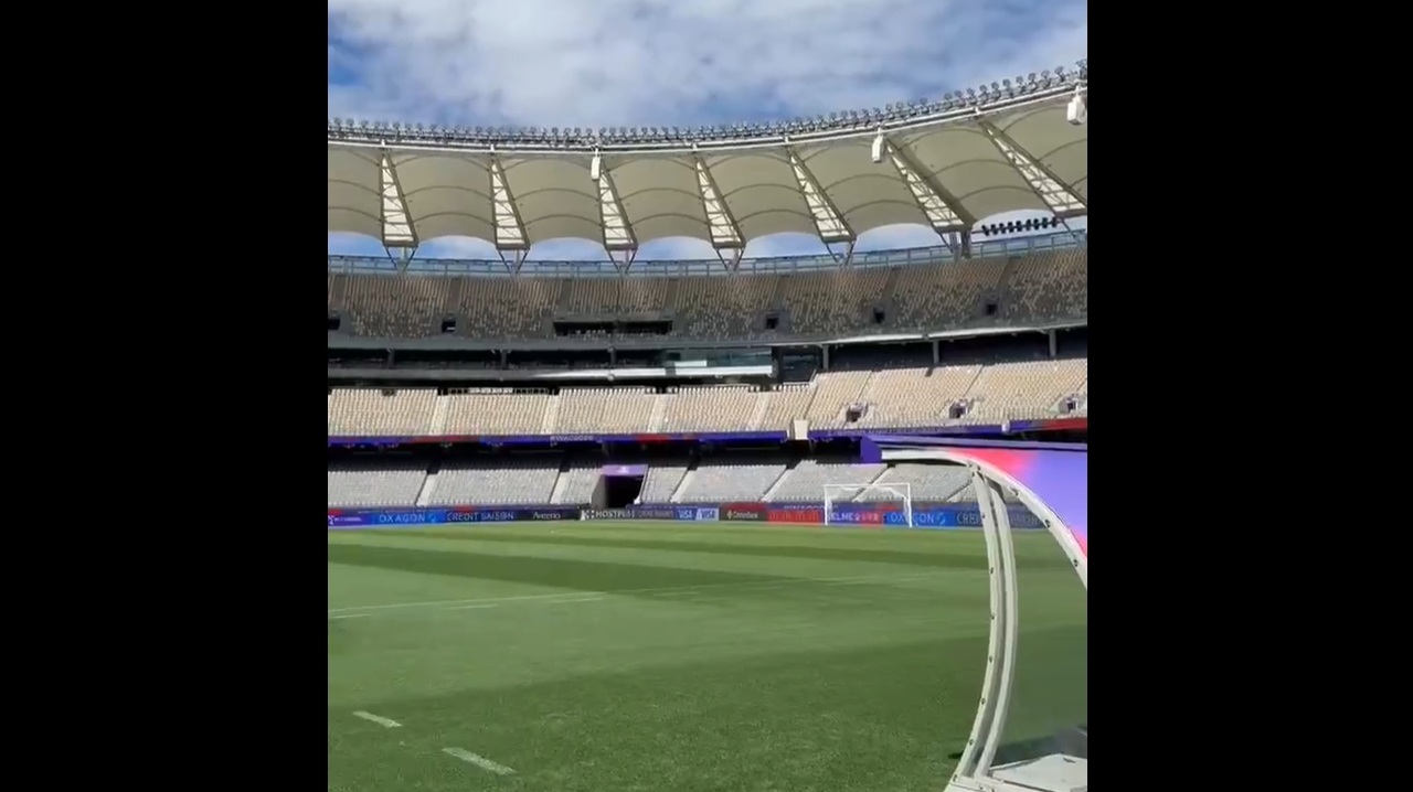 直播吧03月16日訊 體壇周報(bào)官號(hào)在微博曬出了其記者馬德興拍攝的介紹比賽場(chǎng)地的視頻。中國(guó)女足和澳大利亞女足將在此地進(jìn)行亞洲杯半決賽的較量。
