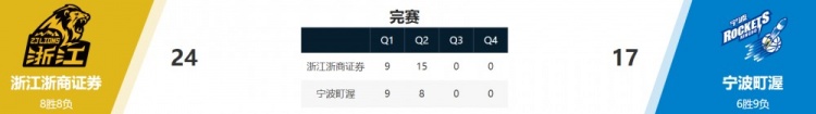 其中,廣廈24-17戰(zhàn)勝寧波。