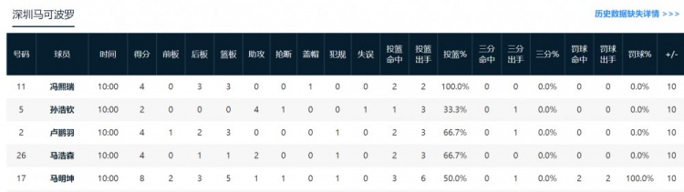 深圳:馬明坤8分5籃板1助攻1搶斷。
