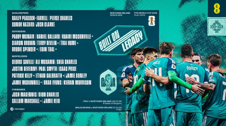 世預(yù)賽附加賽戰(zhàn)意大利,北愛爾蘭名單:休姆、巴拉德、德文尼在列