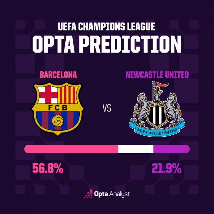 1、Opta超級計算機(jī)在10000次模擬后,本場比賽巴薩有56.8%的概率戰(zhàn)勝紐卡。