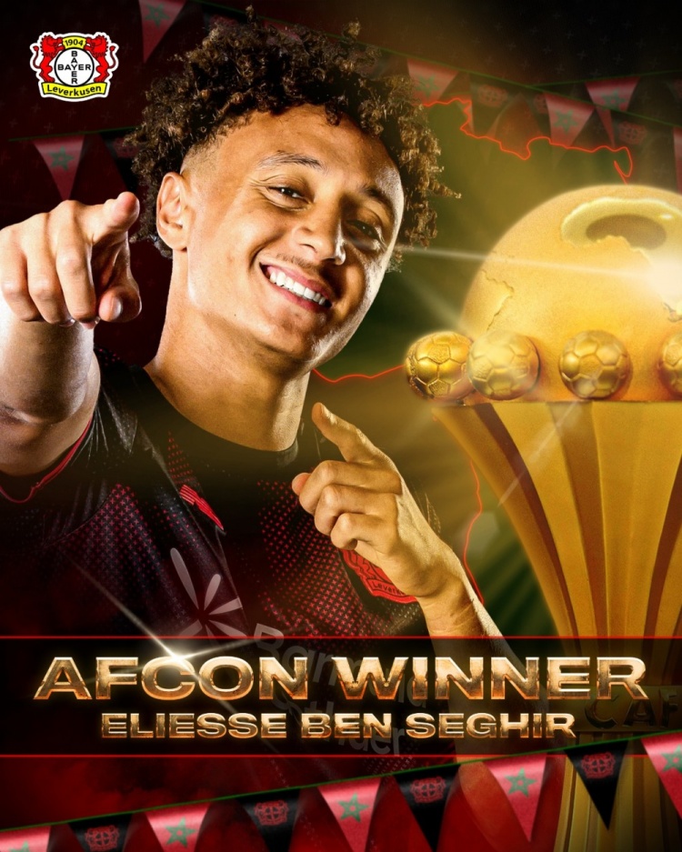 直播吧3月18日訊 今天,非洲杯冠軍重新回到摩洛哥手中,勒沃庫森官推隨后發(fā)文,祝賀隊內的摩洛哥球員獲得冠軍。