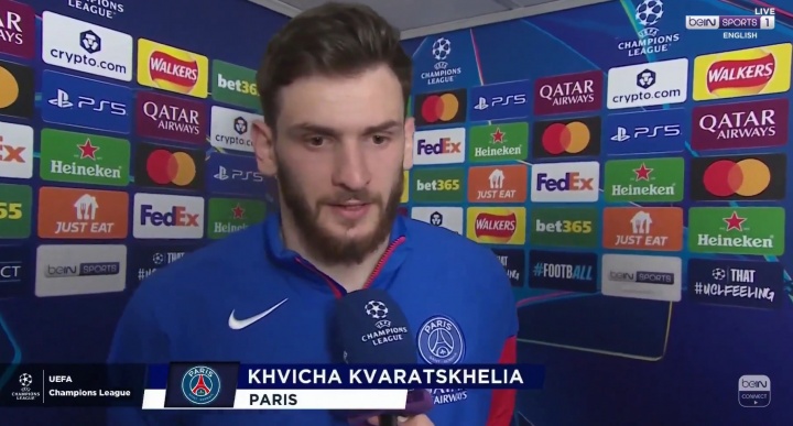 直播吧03月18日訊 凌晨歐冠1/8決賽次回合,巴黎客場(chǎng)3-0切爾西,總比分8-2淘汰對(duì)手。克瓦拉茨赫利亞賽后接受采訪,他在兩回合比賽中貢獻(xiàn)3球1助。