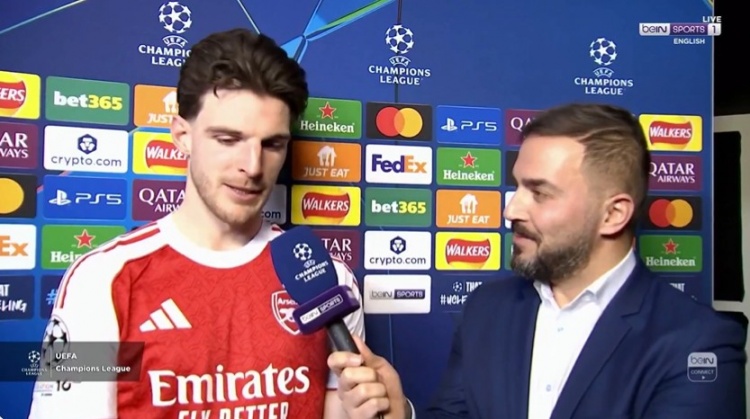 直播吧3月18日訊 今天凌晨歐冠1/8決賽次回合,阿森納2-0擊敗勒沃庫森,最終以總比分3-1晉級。阿森納中場賴斯在賽后接受了記者采訪。