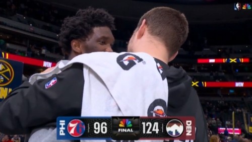 惺惺相惜!約基奇賽后和恩比德?lián)肀?相互摟著聊了一會(huì)