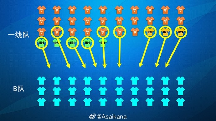 二者雖有交集,但并無強(qiáng)制綁定關(guān)系。B名單中的球員不一定進(jìn)入B隊(duì),A名單中的U21球員同樣可以進(jìn)入B隊(duì)。