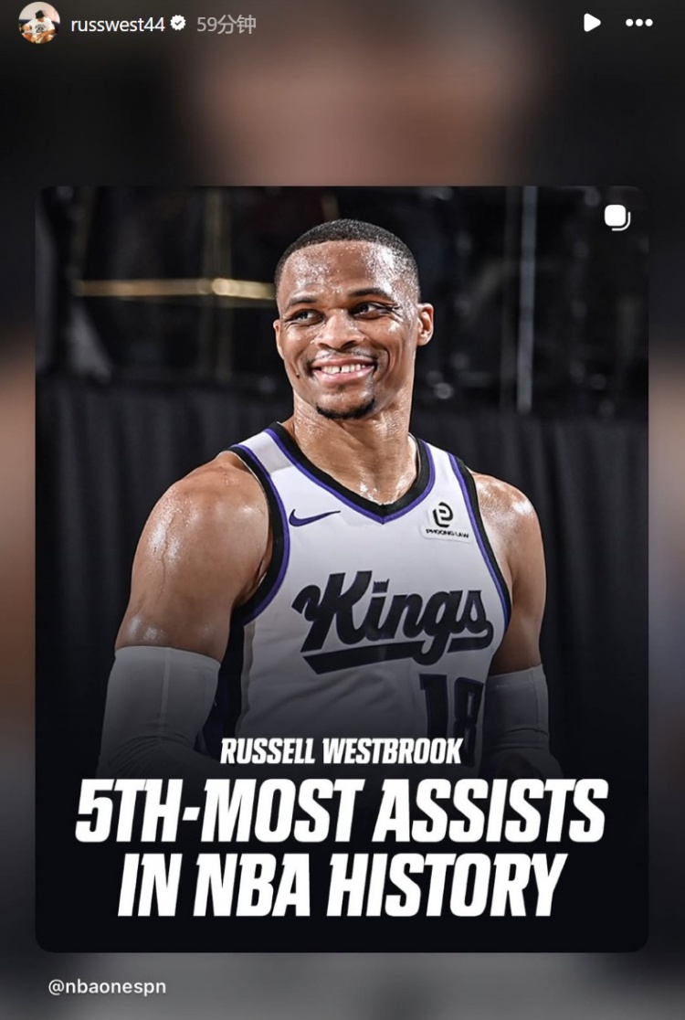 在本場(chǎng)比賽中,威少生涯助攻總數(shù)連續(xù)超越馬克·杰克遜和納什,上升至NBA歷史第五,威少賽后轉(zhuǎn)發(fā)多條動(dòng)態(tài)祝賀自己。