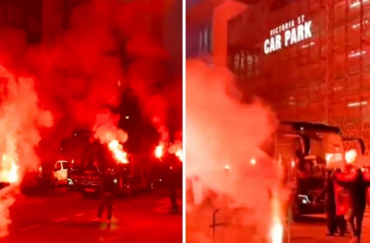 客隊(duì)球迷的行程預(yù)訂是在歐足聯(lián)制裁之前進(jìn)行的,加拉塔薩雷的球迷在利物浦市中心用煙花和照明彈迎接他們的球隊(duì)大巴。這些場(chǎng)景迅速在社交媒體上流傳開來(lái),維多利亞街停車場(chǎng)附近的街道被照明彈照亮,那里是加拉塔薩雷賽前駐扎的地方。人們也擔(dān)心加拉塔薩雷的球迷仍然能夠獲得球場(chǎng)周圍的門票。
