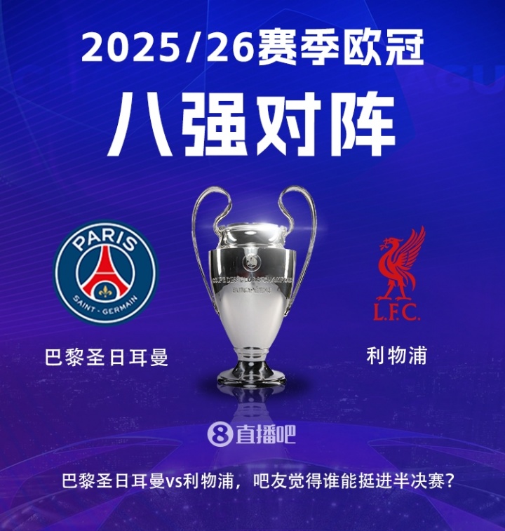 1/4決賽兩回合將在4月7/8日、4月14/15日進行,巴黎圣日耳曼先主后客,利物浦先客后主。