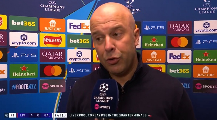 直播吧03月19日訊 凌晨歐冠1/8決賽次回合,利物浦4-0大勝加拉塔薩雷,總比分4-1晉級(jí)8強(qiáng),賽后利物浦主帥斯洛特接受了TNT的采訪。