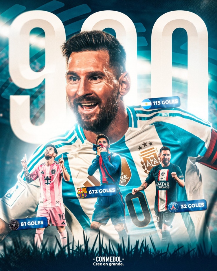 900球里程碑!南美足聯(lián)官方曬海報祝賀梅西:獨一無二的梅西