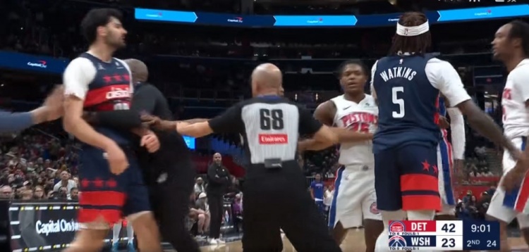 最終,裁判吹罰保羅·里德一級惡意犯規(guī),武克切維奇和霍蘭各自吃T