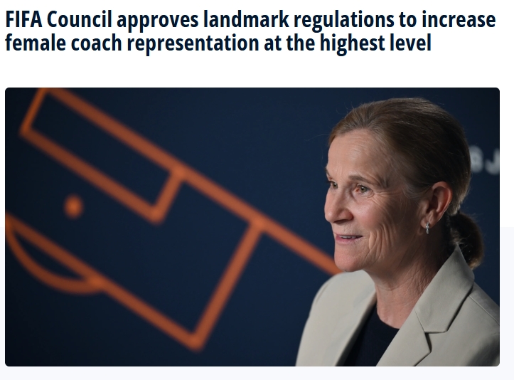國(guó)際足聯(lián)理事會(huì)今日通過(guò)具有里程碑意義的新規(guī),將重塑女子足球未來(lái)格局,要求所有旗下女子賽事參賽隊(duì)的教練組必須包含女性成員。