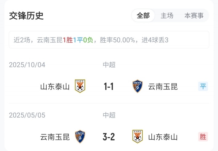 目前中超積分榜上,云南玉昆1勝1負(fù)積3分,位列第3;山東泰山2戰(zhàn)全勝積0分,位列第7。